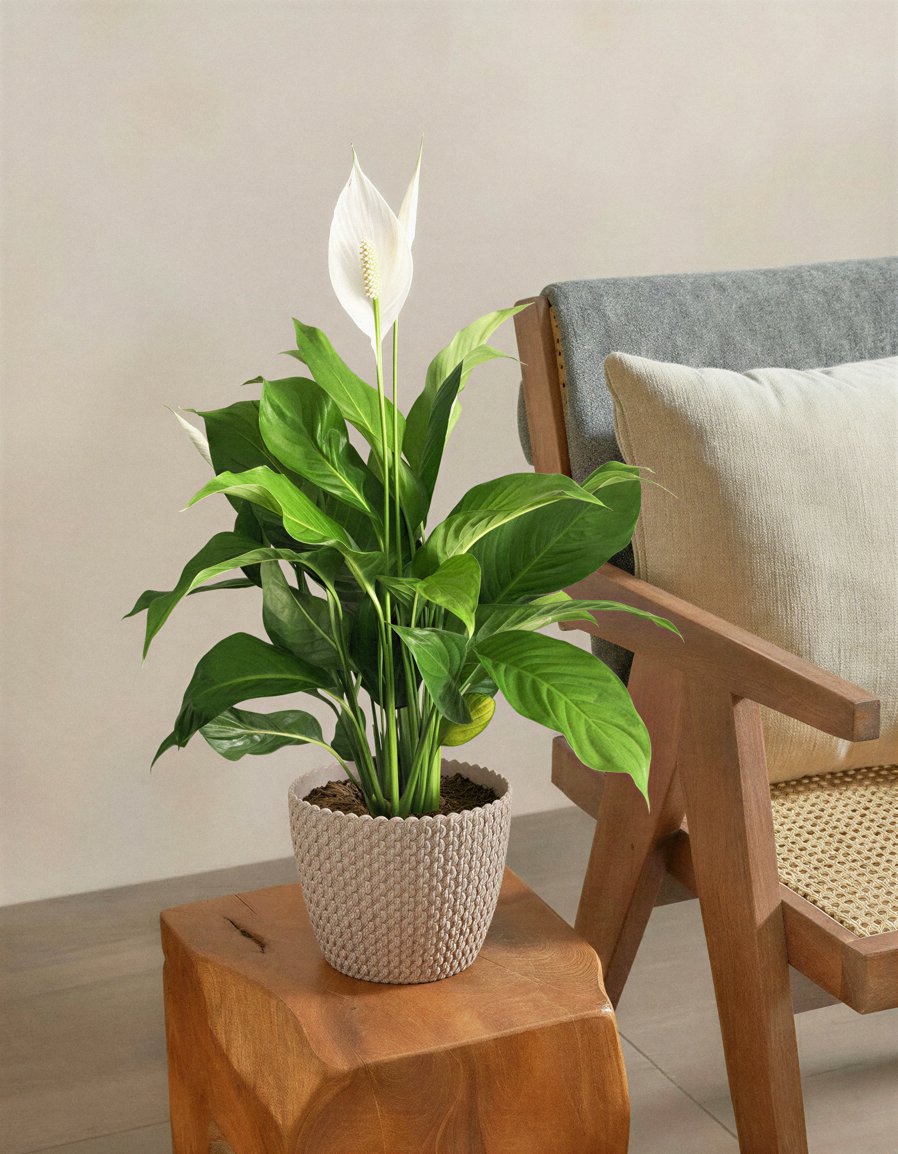 A symbol of calm and renewal, the Peace Lily blooms like a soft pause in a long sentence. It purifies indoor air and thrives with minimal care, bringing harmony to bedrooms and living spaces.